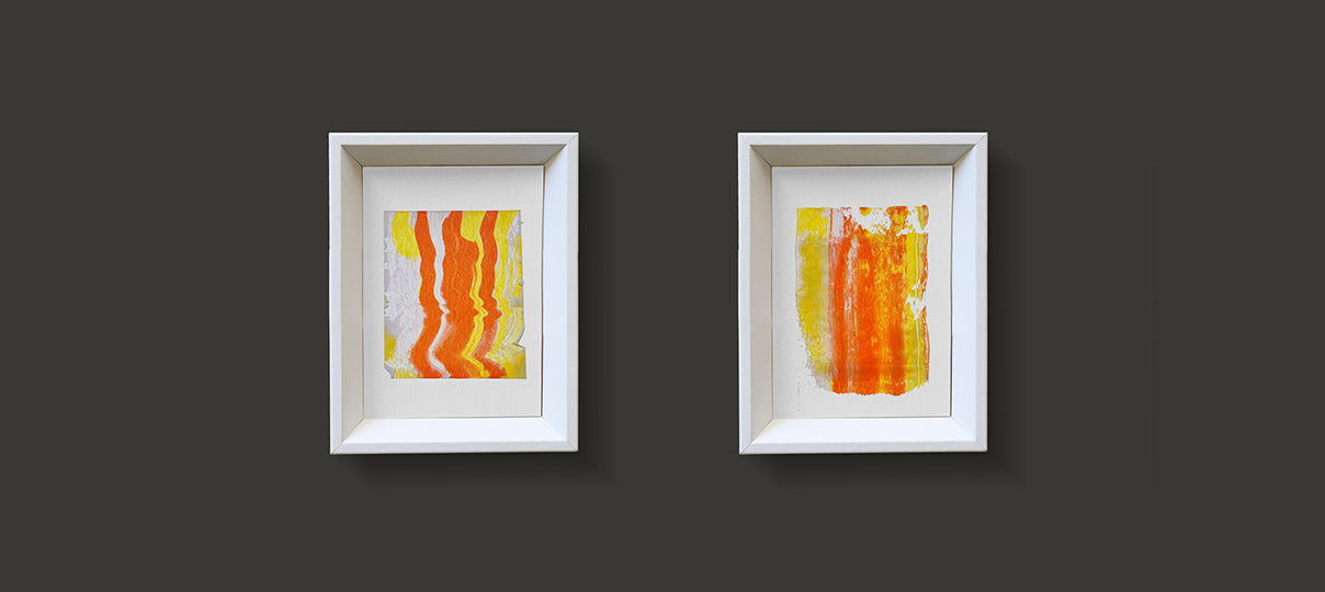 Paintings are sold with white wood frame.