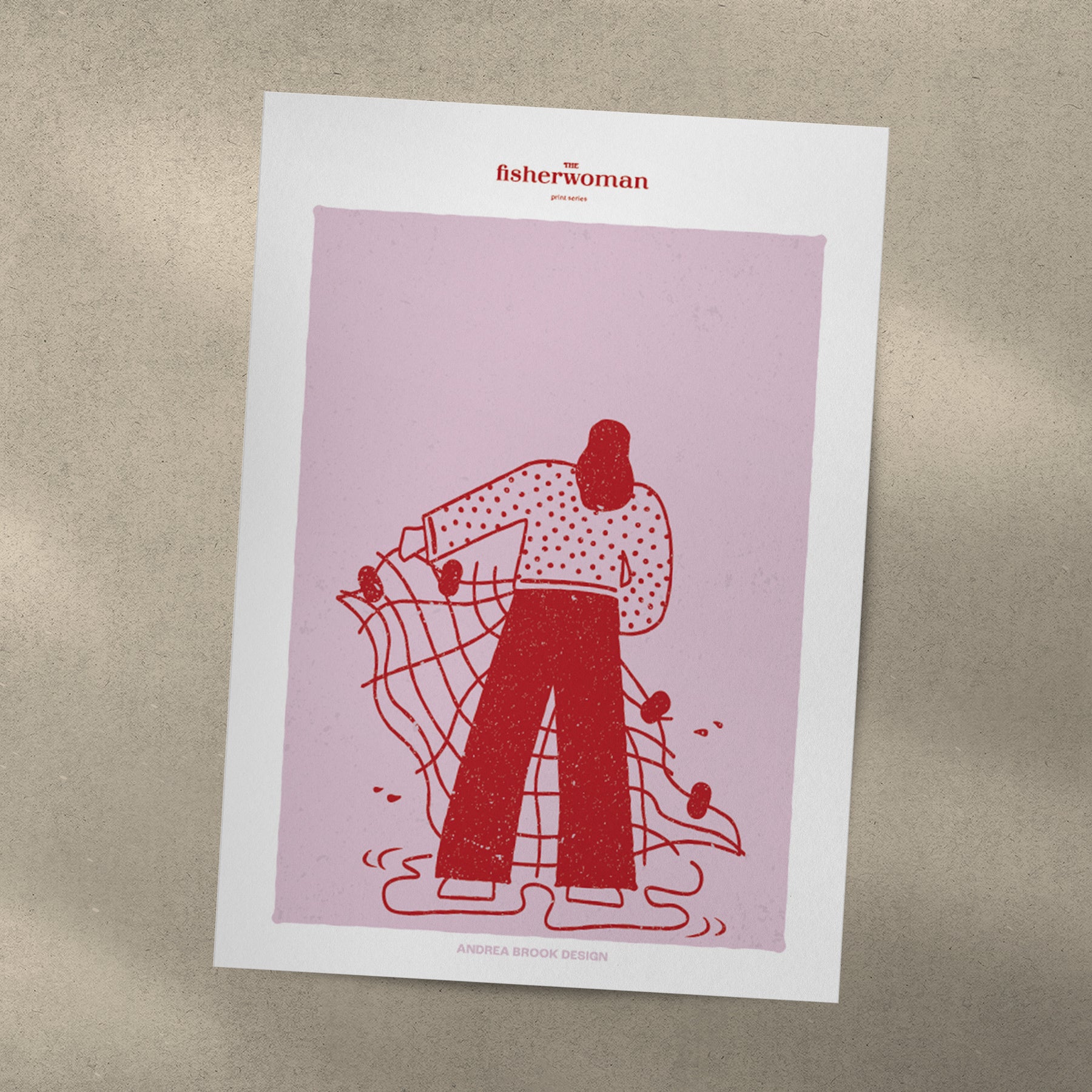 High quality art paper illustrations of The Fisherwoman prints series by Andrea Brook Design. These prints are inspired by all fisherwoman of the arctic archipelago and northern Norway. In a very sensitive and rather minimalist aesthetic, the fisherwoman series depicts those females who make their living out in the sea.