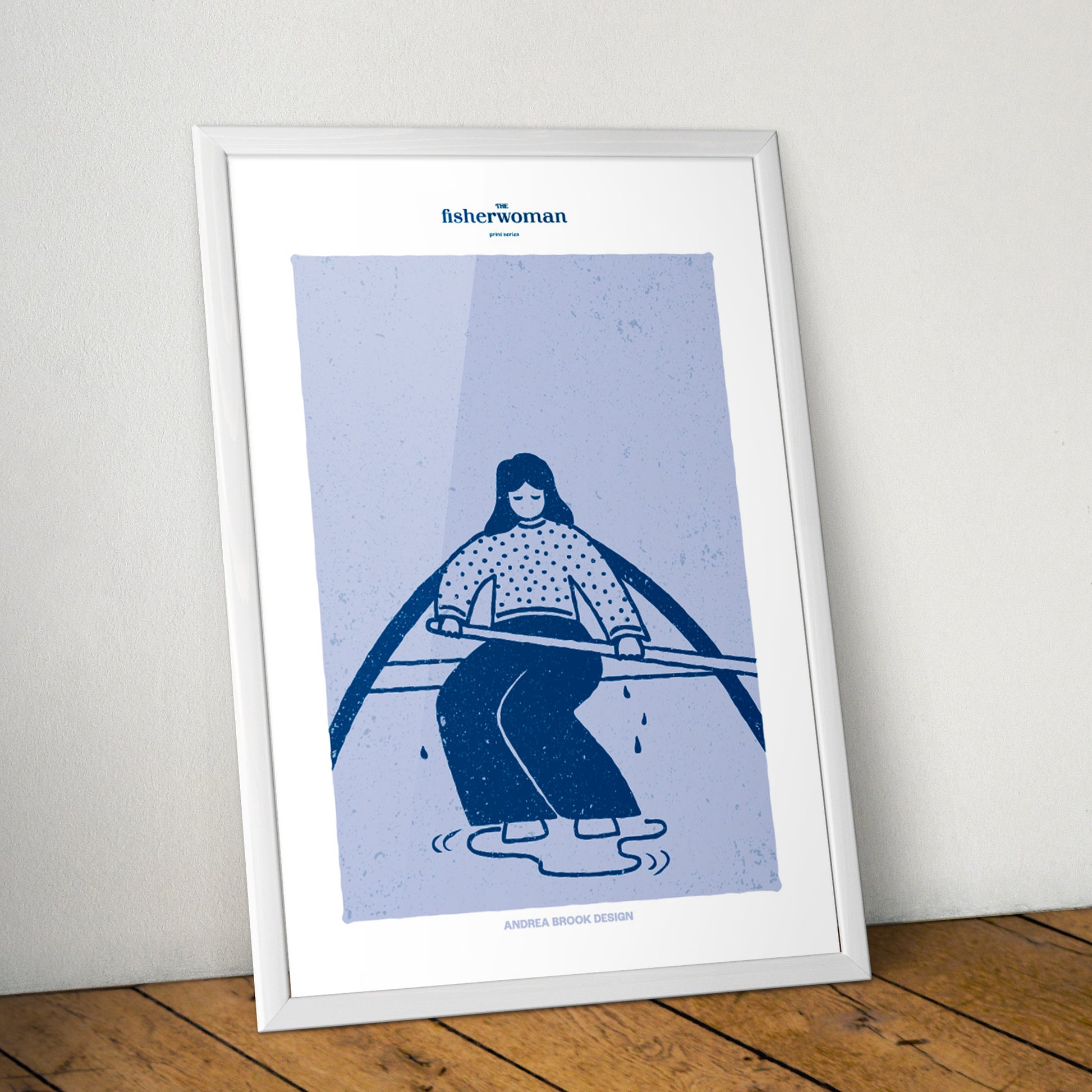 High quality art paper illustrations of The Fisherwoman prints series by Andrea Brook Design. These prints are inspired by all fisherwoman of the arctic archipelago and northern Norway. In a very sensitive and rather minimalist aesthetic, the fisherwoman series depicts those females who make their living out in the sea.