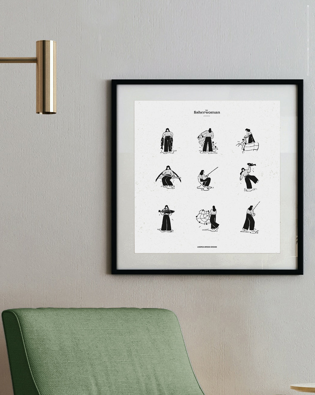 High quality art paper illustrations of The Fisherwoman prints series by Andrea Brook Design. These prints are inspired by all fisherwoman of the arctic archipelago and northern Norway. In a very sensitive and rather minimalist aesthetic, the fisherwoman series depicts those females who make their living out in the sea.