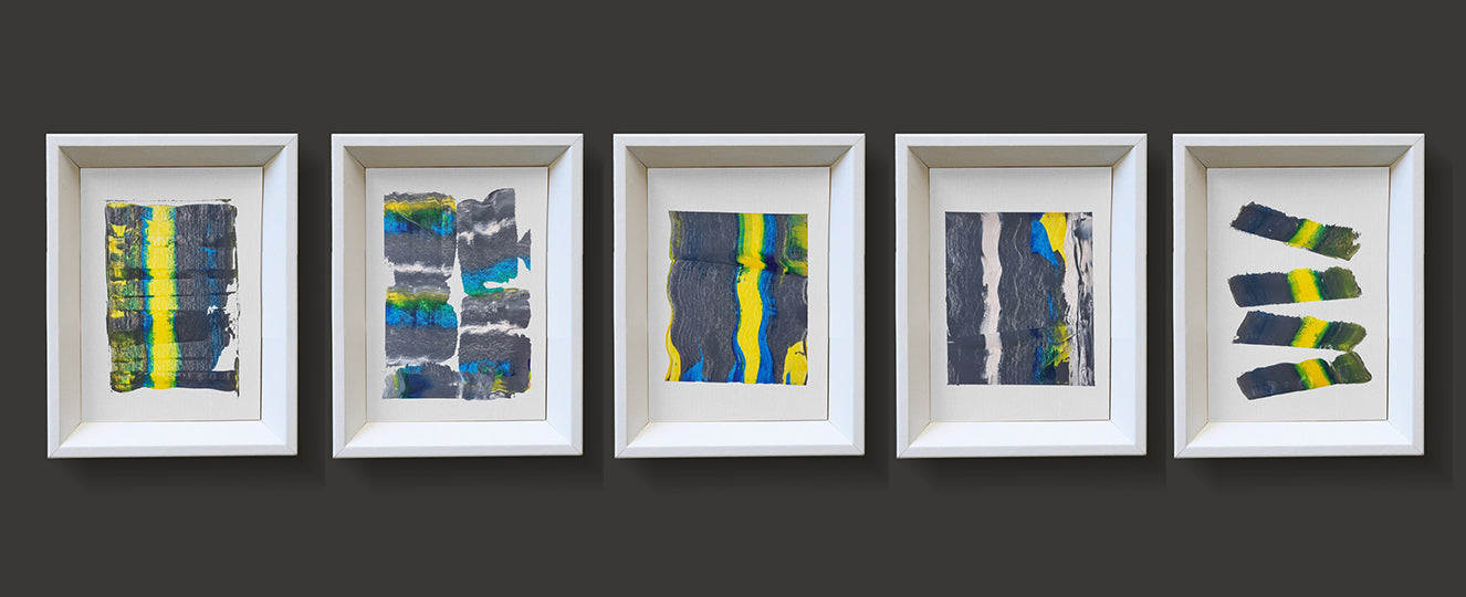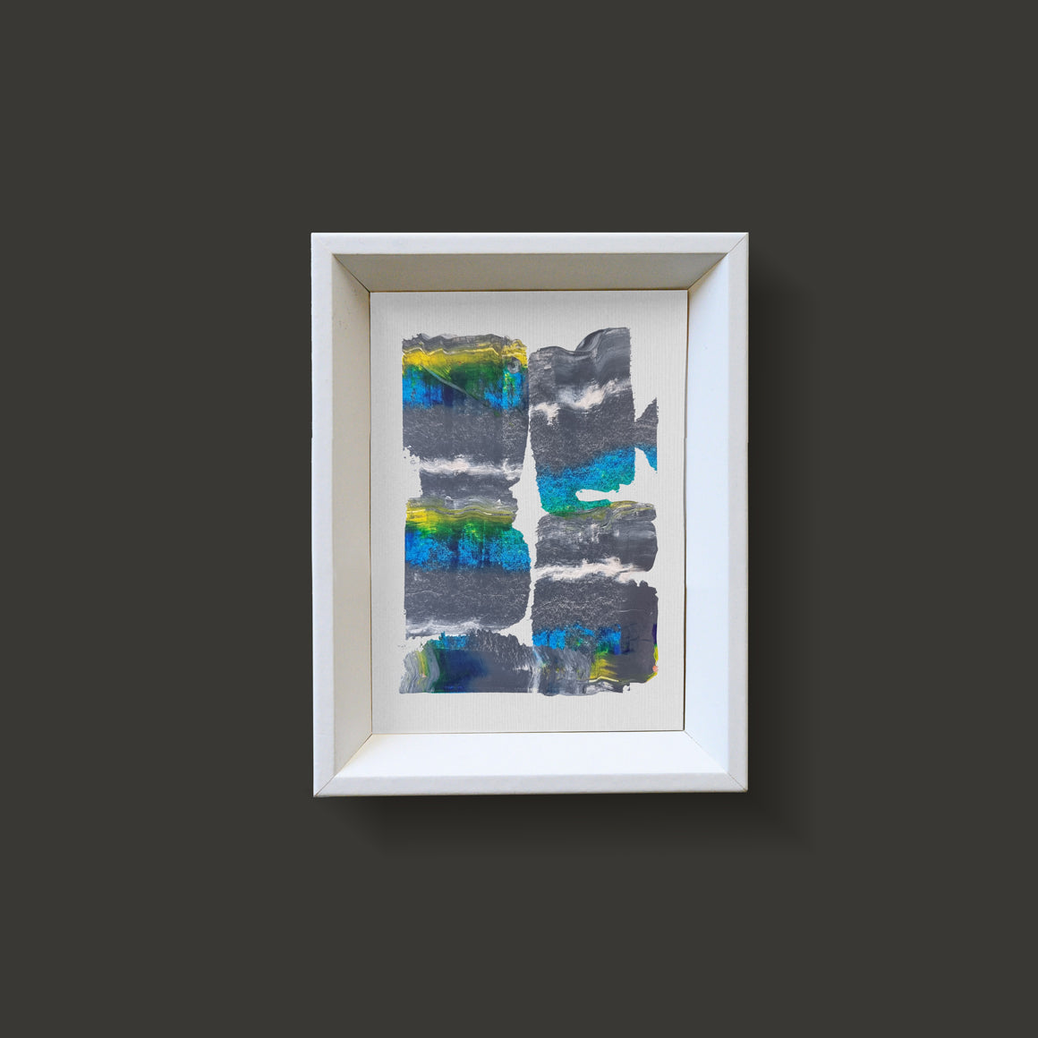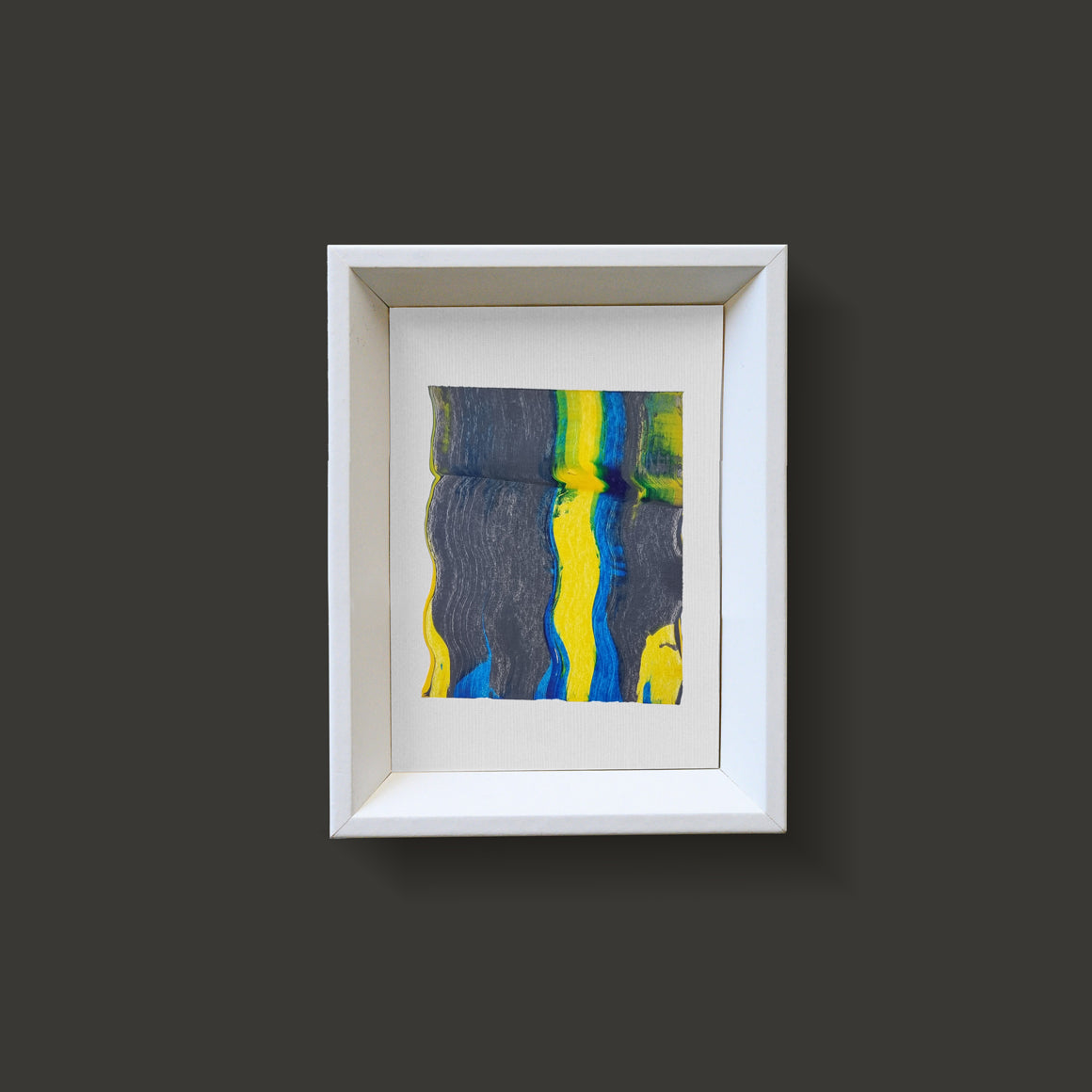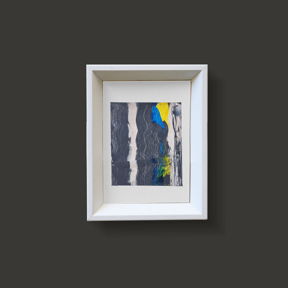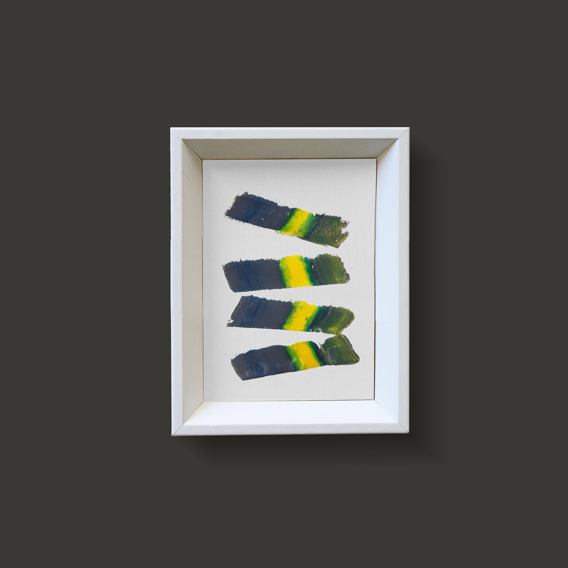 Paintings are sold with white wood frame.